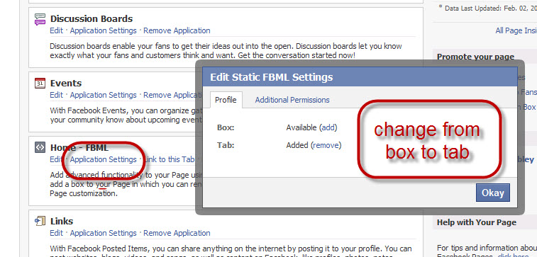 Of note: this FBML box will automatically be added to your boxes area on your Fan Page – if you want this to be a new tab, or canvas page you need to return to your editing area on your fanpage.